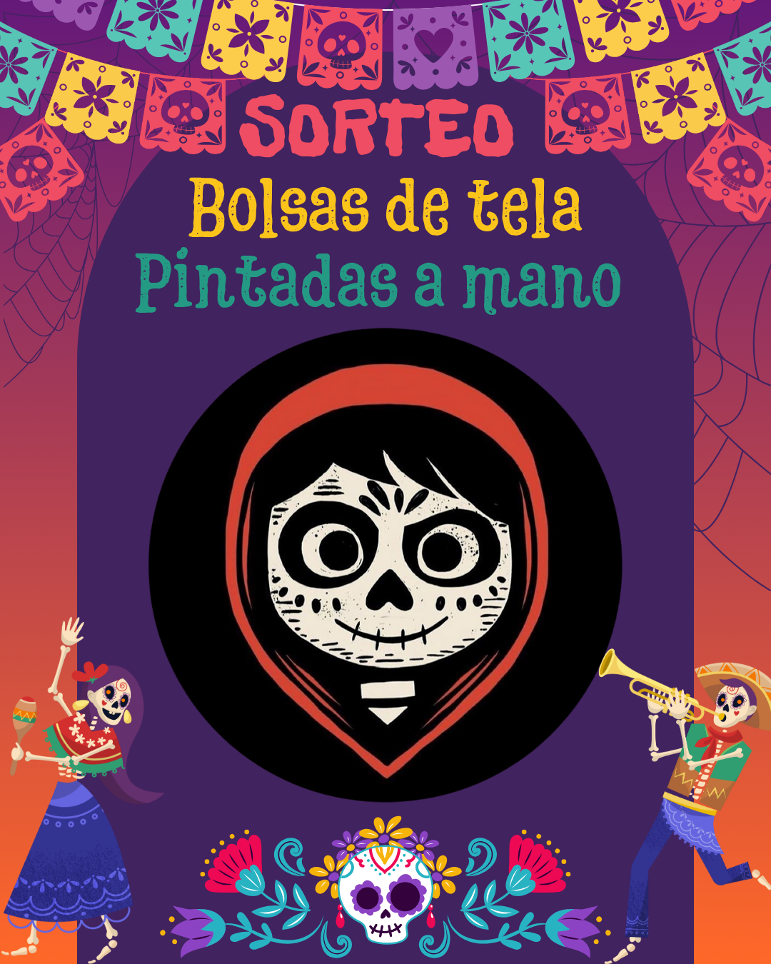 Una bolsa de tela pintada a mano con temática de Coco para un/a ganador/a de Facebook.